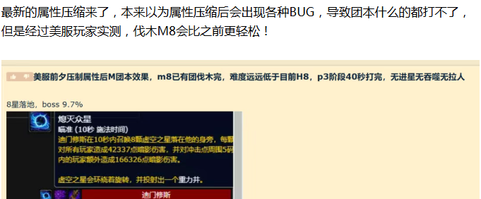 对于之前已经全通的公会来说伐木会比之前更轻松,毕竟BOSS的血量都被大砍了,很多机制甚至都可以跳过了,但是对于之前没打过M8的团队来说依然有难度,毕竟部分机制还是要走流程的,不熟悉机制依然打不过!