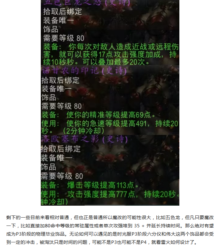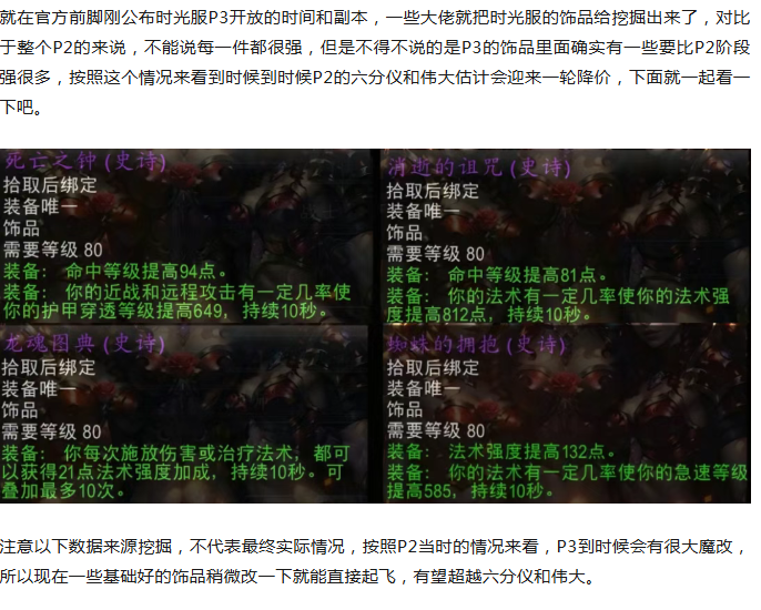 魔兽世界:时光服P3最强饰品曝光,六分仪和伟大即将迎来暴跌