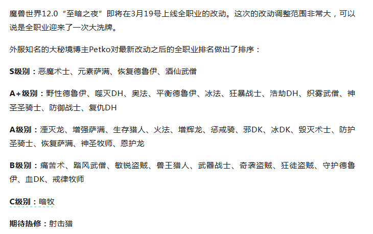 魔兽世界:新CD全职业全专精大米排名出炉,4个S级别