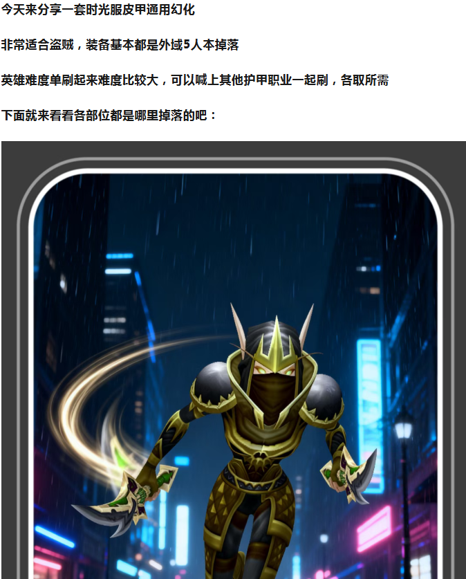 魔兽世界时光服皮甲通用幻化推荐!适合盗贼