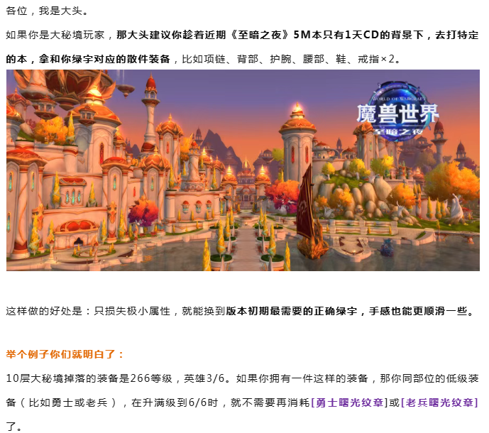 魔兽世界:损失极小属性,换手感顺滑+省英雄曙光纹章!趁5M本1天CD,刷齐绿字散件