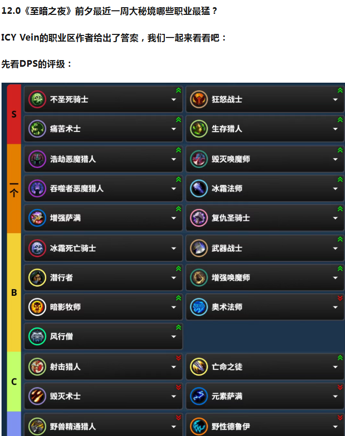 值得注意的是这只是前夕的排名,12.0开放之后有新的天赋点以及套装,排名会有大幅调整,大家可以选择前夕厉害的职业先体验!