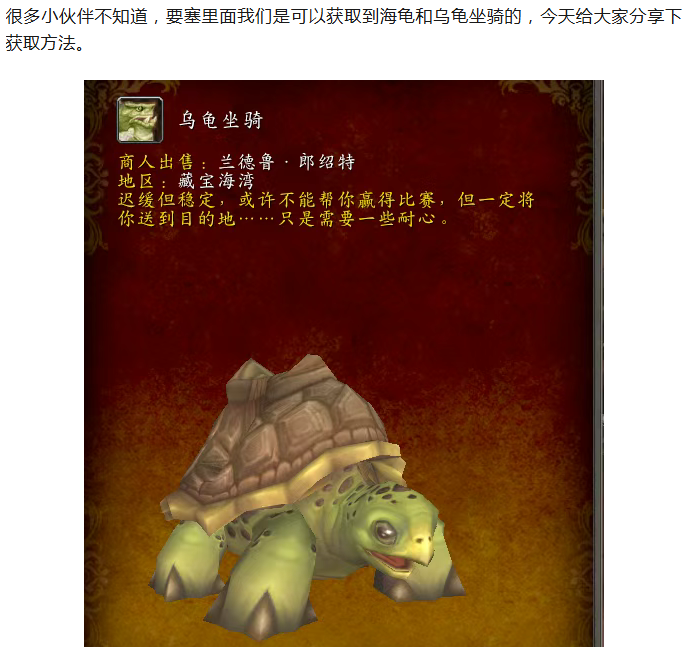 魔兽世界要塞也可获得乌龟海龟坐骑还没拿到来看看