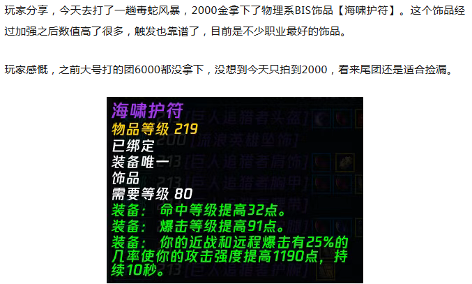 魔兽世界泰坦重铸时光服:捡漏一个BIS饰品