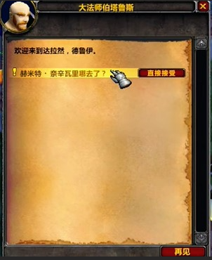 1.前往达拉然平台(坐标68,42),找到大法师接取任务「赫米特·奈辛瓦里去哪儿了」,对话后将被传送至索拉查盆地。