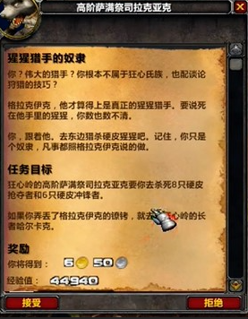 5.前往狂心岭,向“高级祭司”交任务,接取后续任务「猩猩猎手」,并获得一个任务道具。