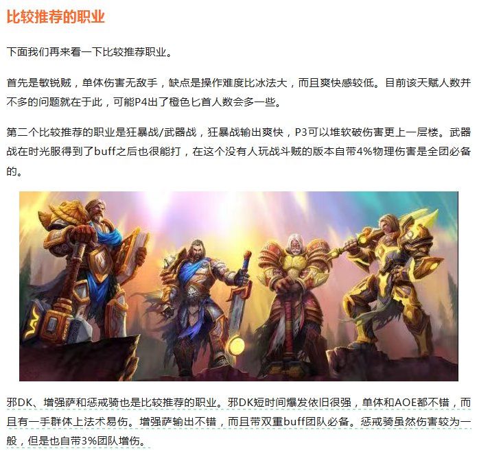 魔兽时光服:P3职业推荐榜!最强香饽饽团长求着你进组