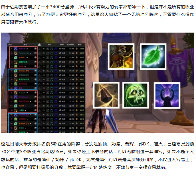 魔兽世界:还没3400分的恭喜了,无脑冲分阵容确定,排名前五都在用