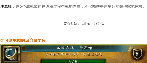 除了今天这篇前瞻,明天大头还会发一篇成就【至暗之夜剧情猎人】的前瞻。这2个成就加一起,玩家的4个阵营声望能提升1级,最重要的是这2个成就都能在练级时完成。