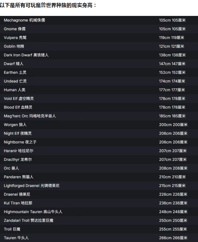 你比你的角色高吗?《魔兽世界》全种族的身高比例大揭秘!
