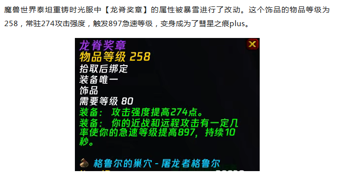魔兽时光服:龙脊奖章被大幅加强