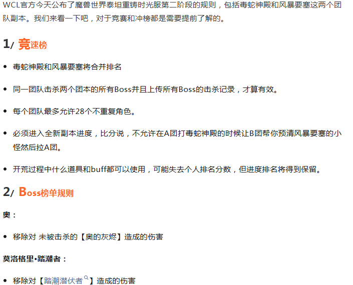 魔兽时光服:P2毒蛇神殿和风暴要塞榜单规则发布