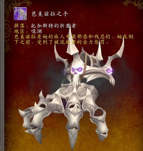 在噬渊有一只坐骑:芭美兹拉之手,还长的时间是无法完成的,而就在前段时间已经修复我们可以正常获得了
