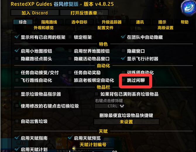 不想被坑的玩家只需要打开RXP插件界面,并且关闭跳过闲聊功能即可