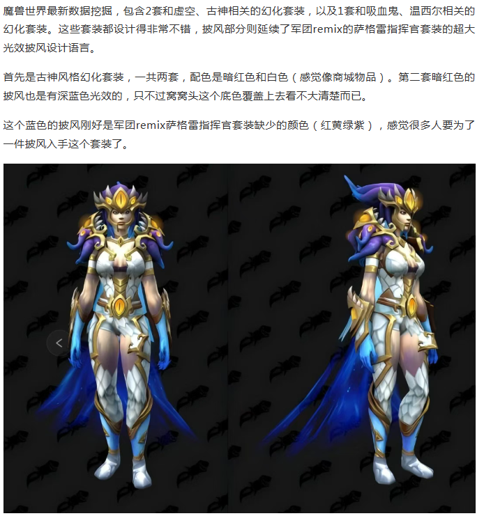 魔兽世界:新增3套超拉风套装!比萨格雷指挥官披风更酷炫