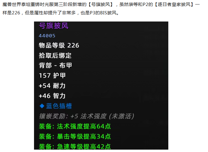 魔兽时光服:同样是226,P3新装备属性居然强这么多!