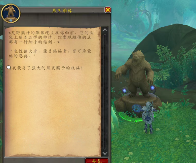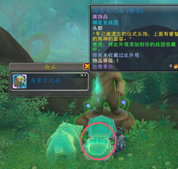在48.52位置,我们可以拾取乌索尔印记,接着来到边上的47.53位置找到熊王雕像,开启地上的宝箱就可以了,里面还有一个头部幻化。