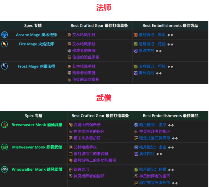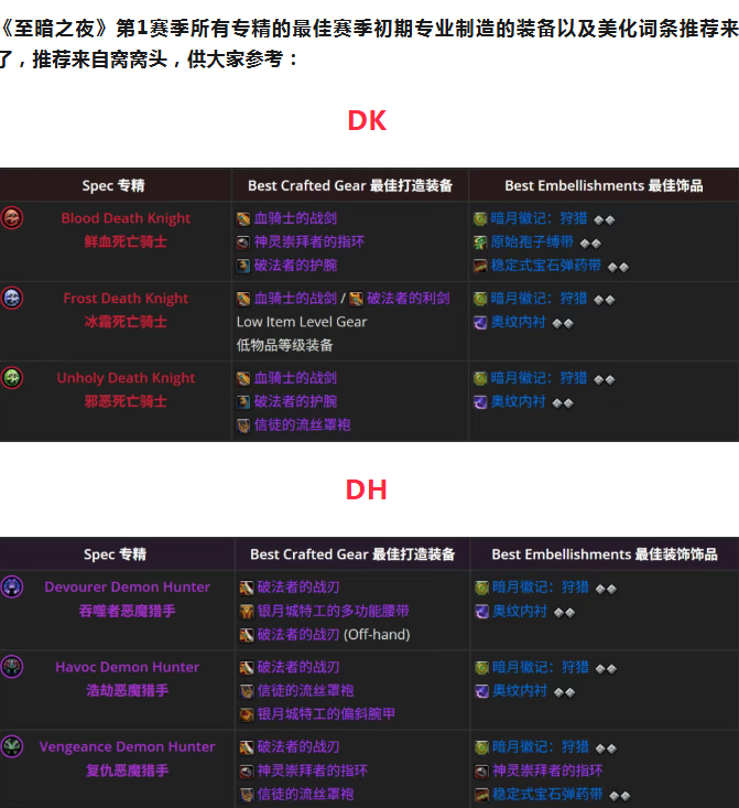 《至暗之夜》第1赛季全职业制作装备及美化词条推荐!