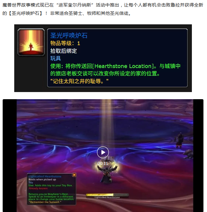魔兽世界:本周人人可入手,圣光呼唤炉石!