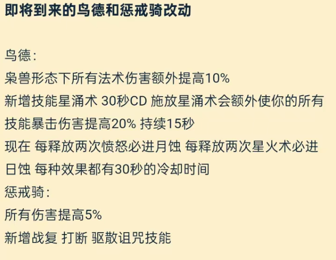 论坛舅舅爆料了鸟德和惩戒骑的改动,鸟德的看起来还算可以,但是惩戒骑的越看越不对劲,特别是新增战复 打断, 驱散诅咒技能。这是要把惩戒骑的功能性拉满去吗?很显然这有点抽象了,但是考虑到雷火近期的一些魔改,这样改动也不是没有可能。当然这这是论坛的爆料,最终以雷火实际改动为准。