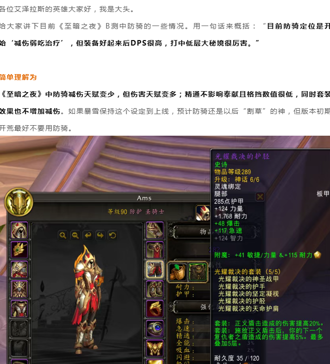 魔兽世界:至暗之夜防骑现状,减伤弱但伤害高,开荒不建议使用