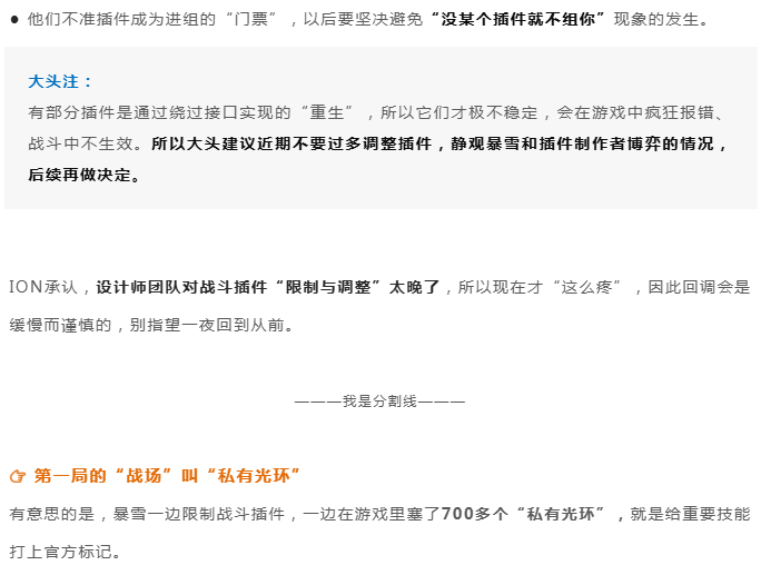● 对战斗插件目前采用“一刀切,然后逐步回调”策略,他们会长期关注战斗插件情况,适时进行动态调整。