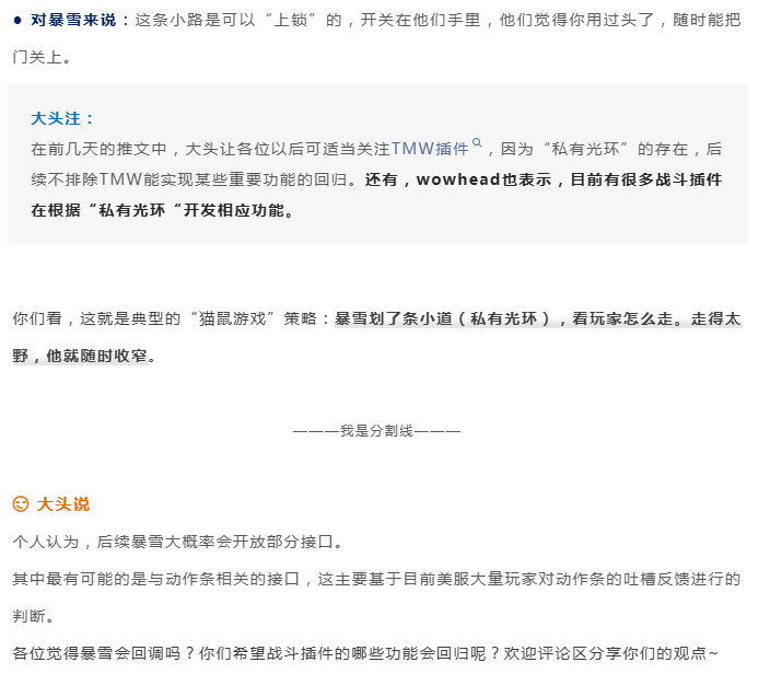 魔兽世界:暴雪和插件开发者的“猫鼠游戏”已开打,回调可能会有,但大头建议做好两手准备!