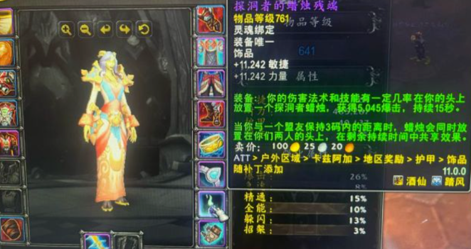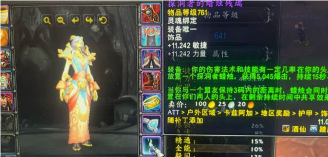 原本以为只是该玩家通过修改游戏代码展示出来是761装等,但是该玩家上线下线之后装等依然是761没变化,而且在wowhead等数据网站查出来这件装备确实是761装等