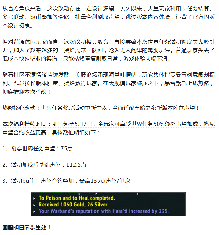 魔兽:美服喷子发大力!国服明天享福利!暴雪紧急热修活动加成!