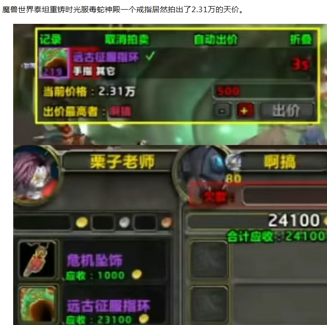 魔兽时光服:一个戒指拍出2万天价