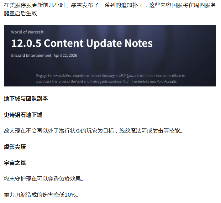 魔兽:补丁上线前几小时,暴雪紧急追加12.0.5补充更新!