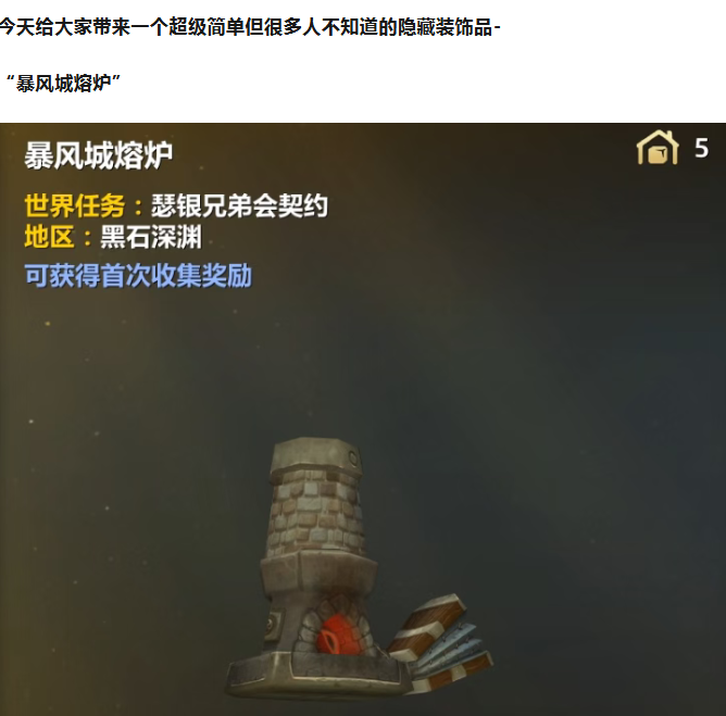 魔兽家宅隐藏装饰品“暴风城熔炉”获取只要3分钟!