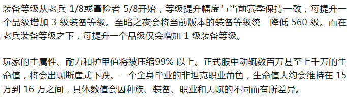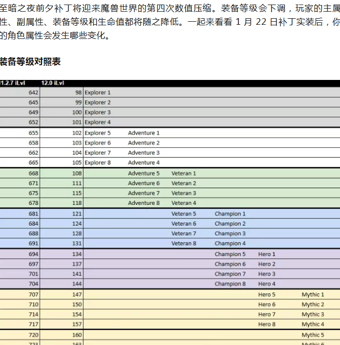 魔兽:22号属性压缩!对应装等表来了!看看你上线后属性会变多少?