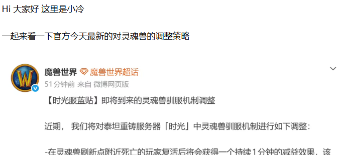 【魔兽世界】时光服为了人人都有灵魂兽官方出手了,不过看到改动令所有人意外