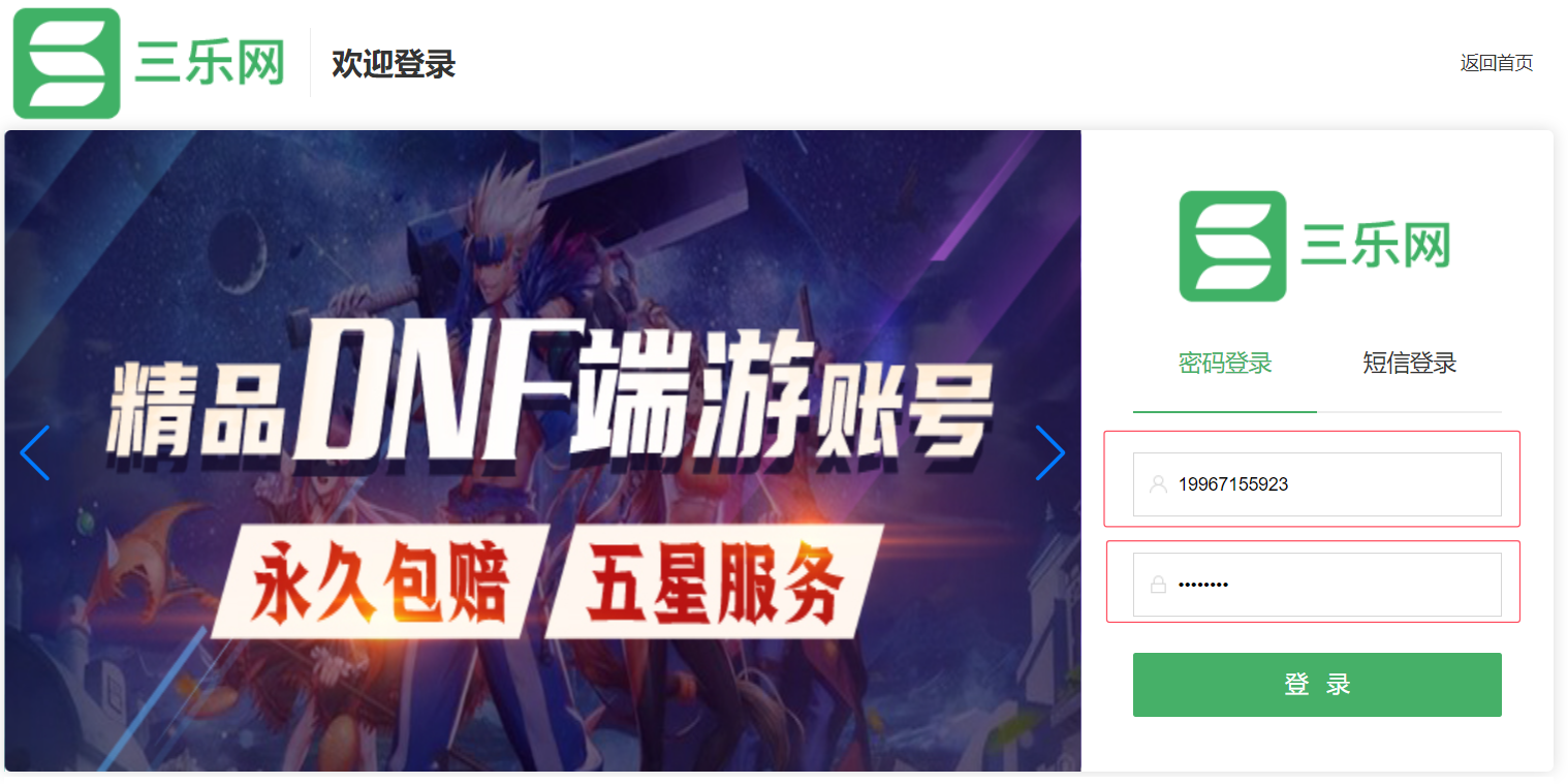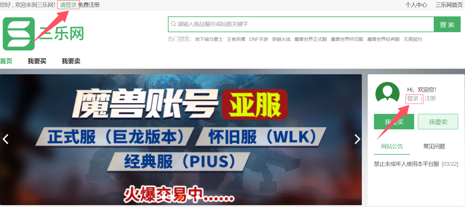 1、打开三乐网地址:https://sanlewang.com,点击头部菜单登录或者点击右边下方登陆,进入登录页面